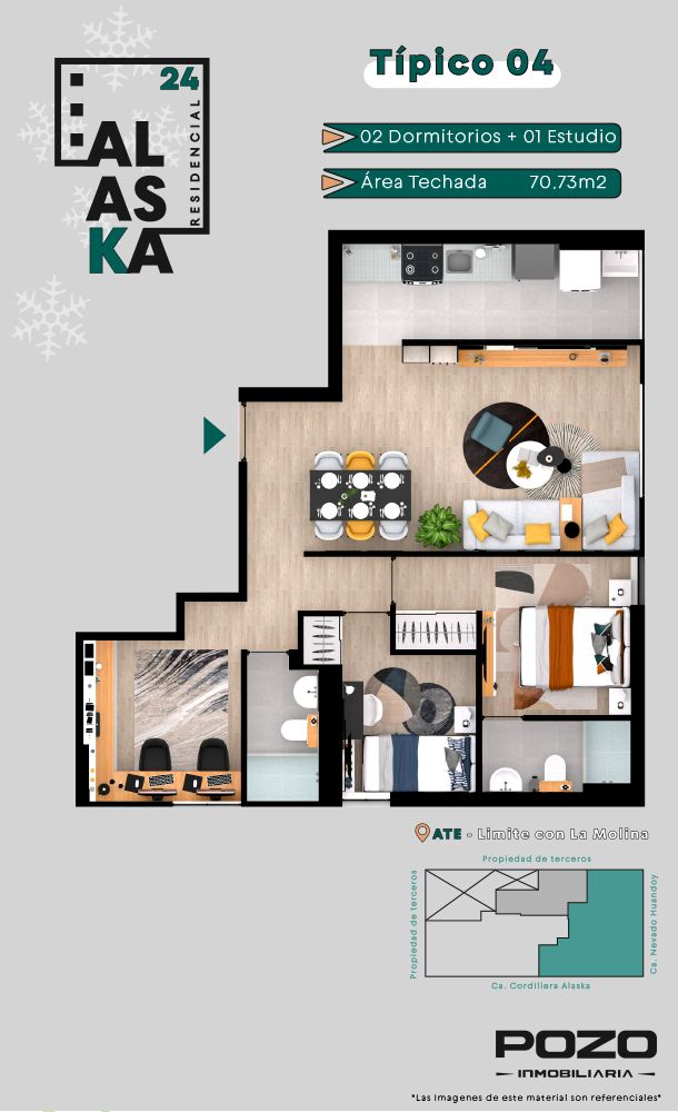 Todas las imágenes de la publicidad fueron elaborados con fines ilustrativos y sus características y dimensiones son aproximadas y referenciales, por tanto pueden presentar modificaciones en el transcurso del proyecto, no constituyendo necesariamente una representación exacta de la realidad. Su único objetivo es mostrar una caracterización general del proyecto y no cada uno de sus detalles. Verifique las características y especificaciones de su departamento al momento de comprar.